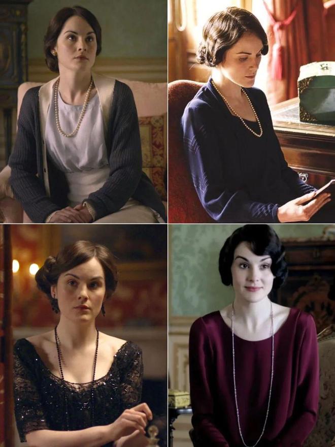 《唐顿庄园》里的大小姐Mary,她的衣服大多带有长项链,颜色上也会有小小呼应。▼