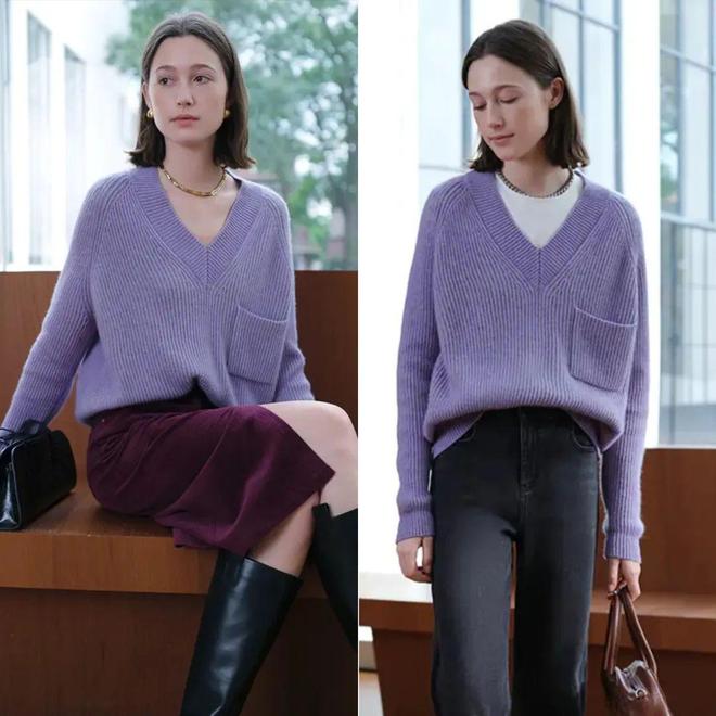 这一件领型做得很好看,也是邓肯羊绒面料。可单穿,可内搭 打底衫,可外搭西装、大衣,一件能穿好几个季度 (戳图可买)。 ▼