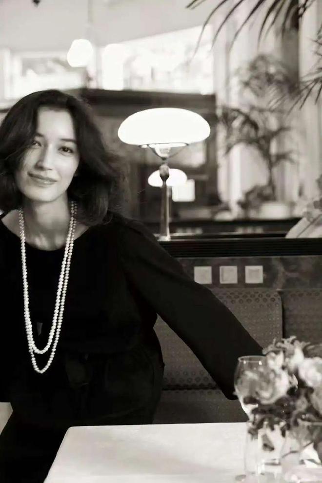 她选择的大多是优雅的小领型,比如小V领、一字领。虽然领口小,但是有纵向线条,依然有用!