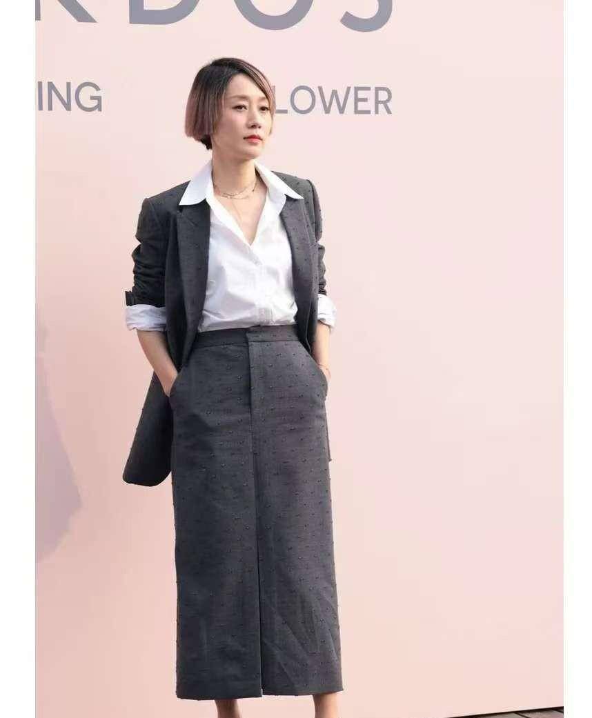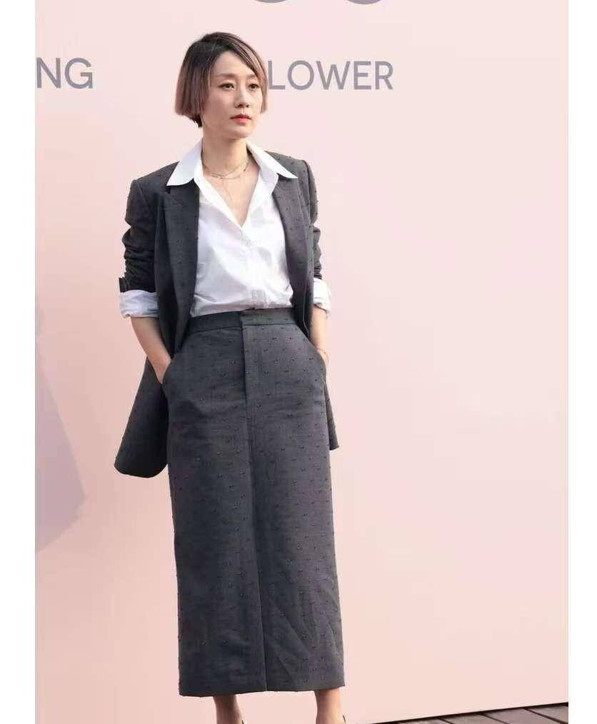 马伊琍将白衬衫塞入裙腰,展现曼妙身材曲线。裙摆长度停留在膝盖上方,既不暴露又展示纤细小腿线条。这种搭配方式同时展现知性大方与柔美优雅。