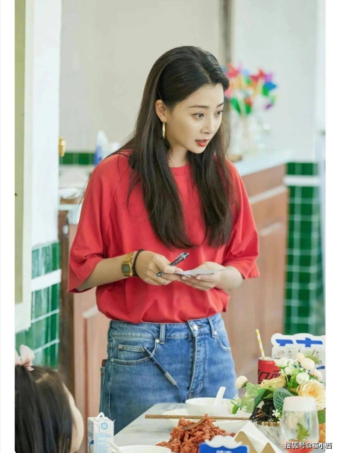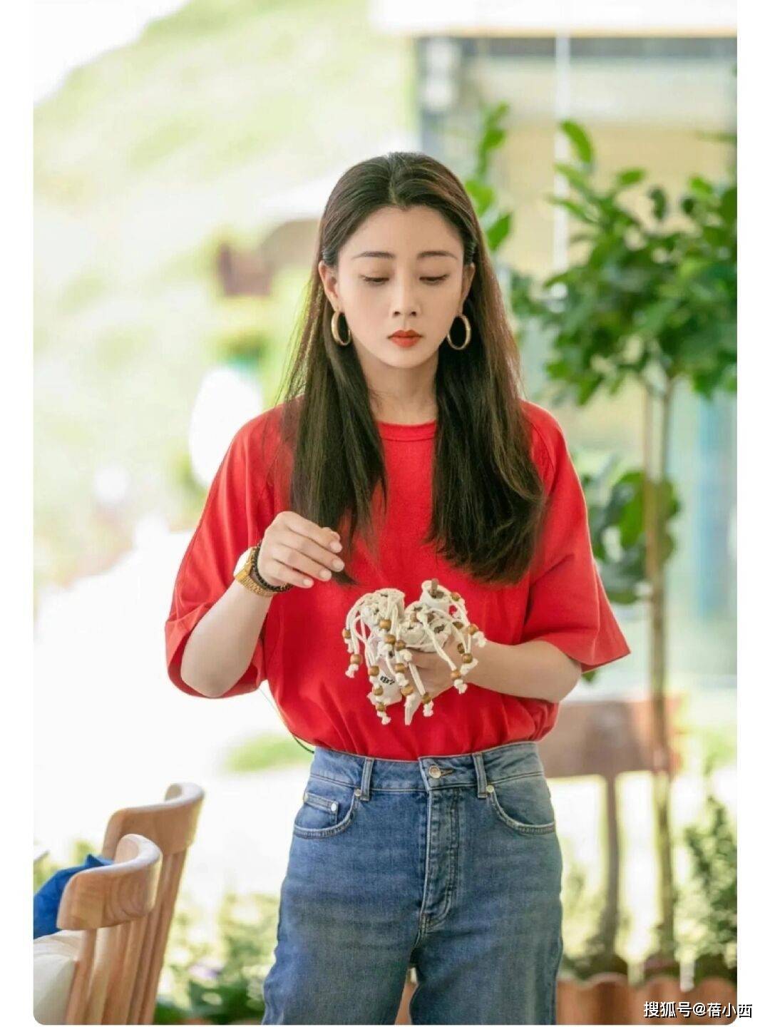 配饰上,她佩戴的金色大圈耳环极具存在感,为造型增添了时尚感与高级感,还很好地平衡了红色T恤的鲜艳与牛仔裤的休闲,让整体造型在活力之余更显精致。