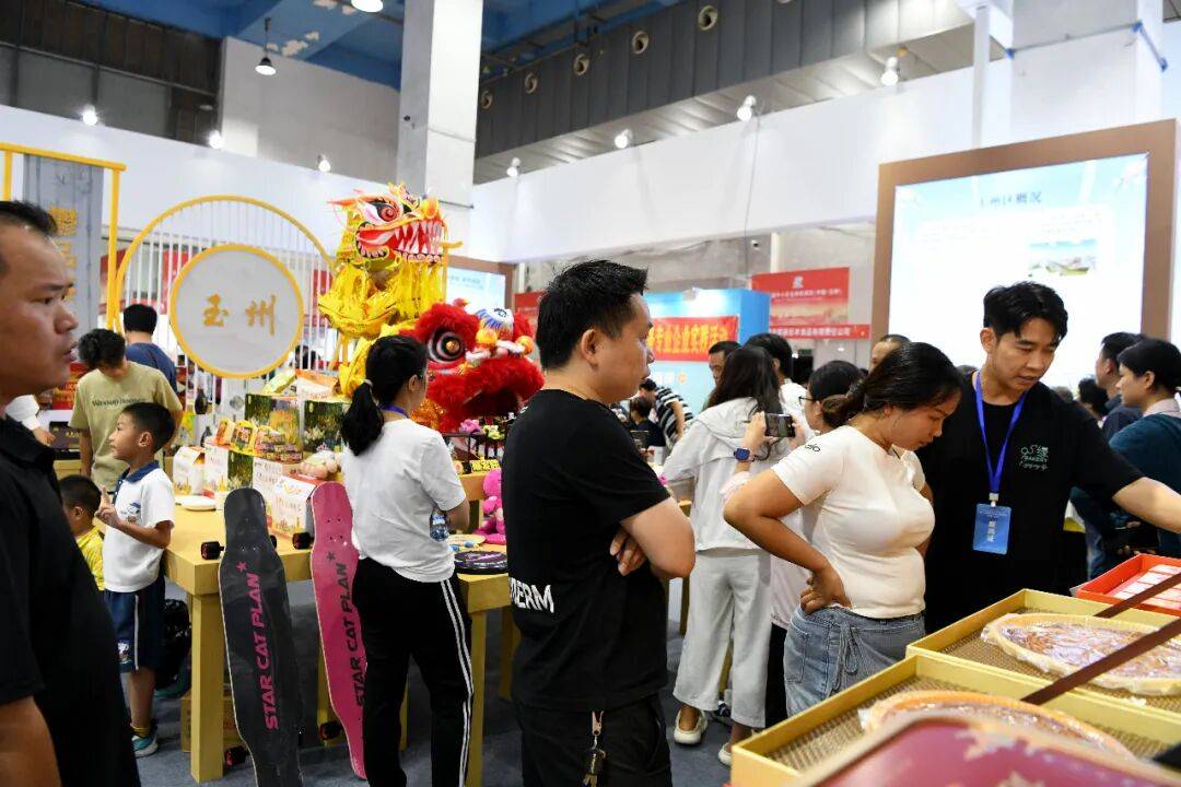 玉州区认真做好本届玉博会参展服务有关工作,宣传发动区内外的著名的企业、商人前来参展,涵括了绿色食品、机械制造、中医药、文旅等多个行业领域及其产品。在非遗美食方面,推出了玉林茶泡、玉林白糤、玉林牛巴等非遗经典传统小吃;在文创赋能传统产业方面,推出了玉林十字街文创系列潮流IP“阿玉”、玉林舞龙醒狮、鹏垌鲲鹏福地蒲扇等带有“鬱”字、“玉商”、“十字街”等字样的核心参展品;在健康产业领域方面,推出了正骨水、鸡骨草胶囊、湿毒清胶囊、玉枣羹等多款经典药品与健康产品;在玉商回归企业参展方面,黎小泽带来的系列特色食品成为展区内又一热门看点。