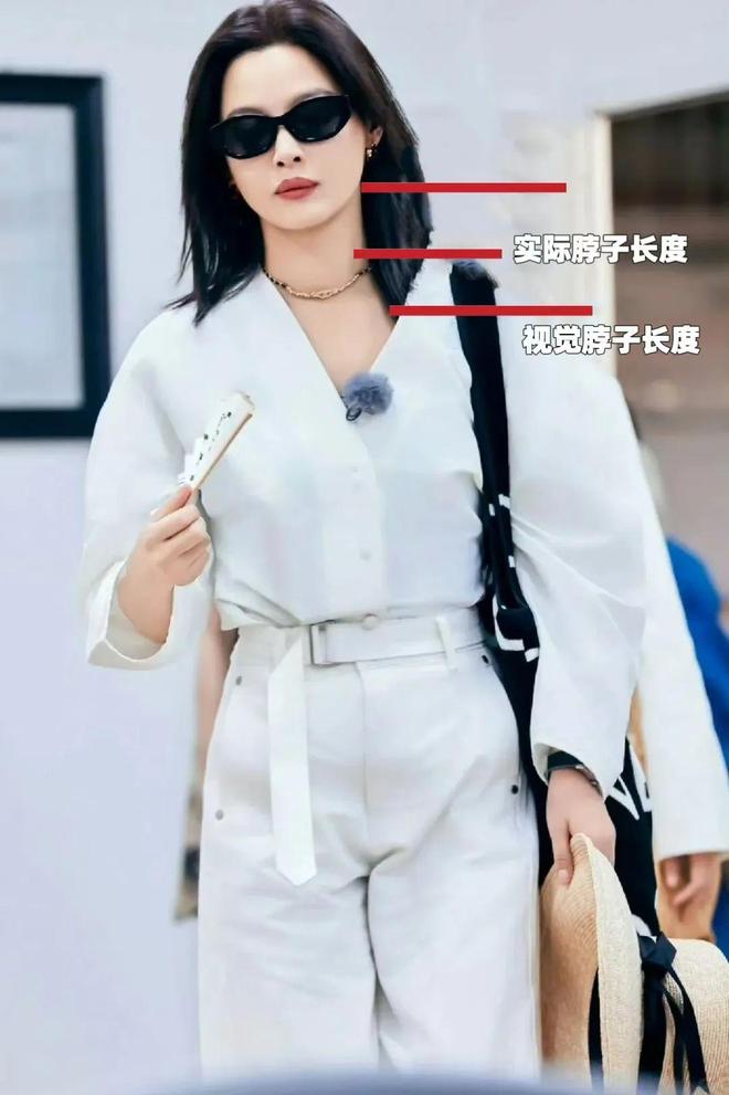 我仔细分析过了,其实各种显脖子长的方法万变不离其宗,不外乎都是这一个底层逻辑:制造竖线条,让脖子看起来更细。