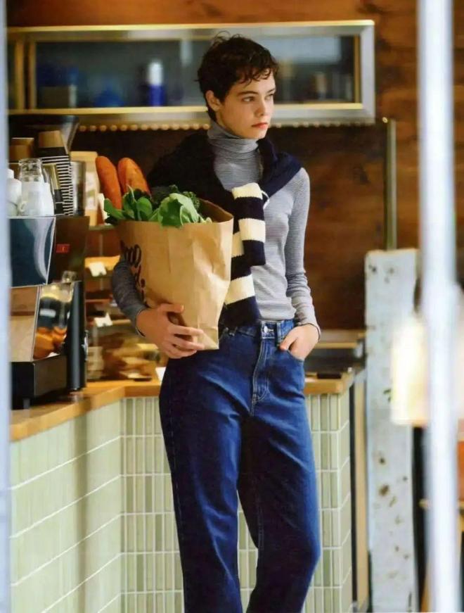 比如这里细围巾作为choker的用法,好像一条水平线,清晰划分出脖子的真实位置。 ▼